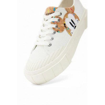Baskets basses à plateforme dotées d'un bout en caoutchouc et de détails en liège, et ornées du Mickey Mouse, le personnage iconique de Disney, brodé sur un côté.