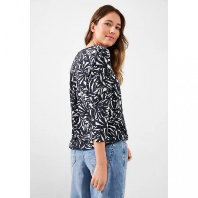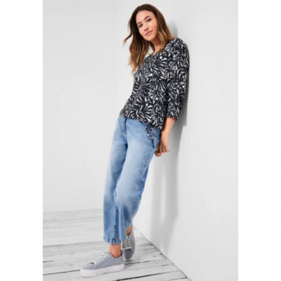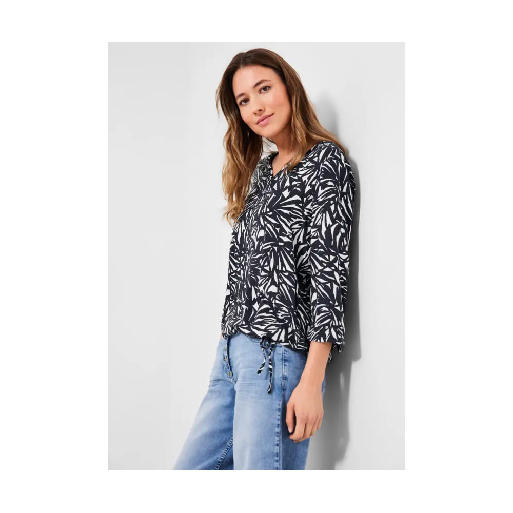 Happiness! Chemisier décontracté pour femmes CECIL. De coupe décontractée, il séduit avec son col rond fendu, ses manches 3/4 et son cordon coulissant à la taille. L'imprimé bicolore donne envie que le printemps arrive. La viscose aérée est tout simplement agréable au toucher.