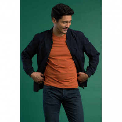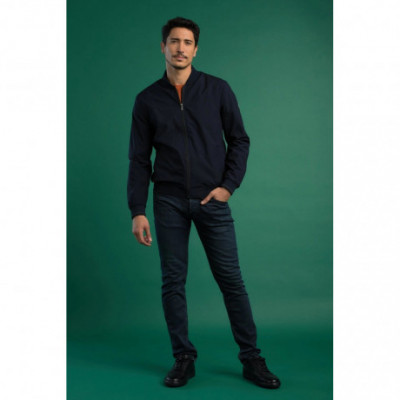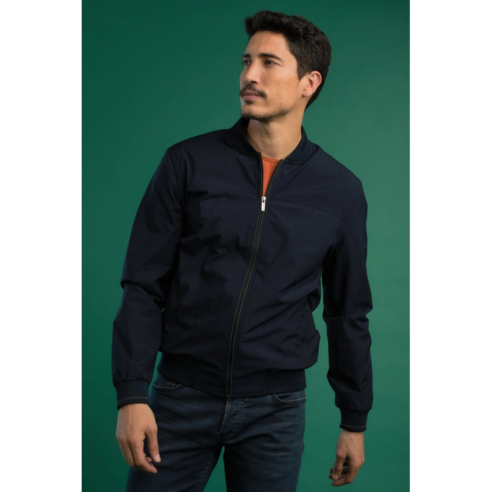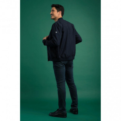 Blouson léger en tissu technique microfibre au touché peau de pêche. Souple et très confortable il est doublé d'un filet mesh bleu marine.