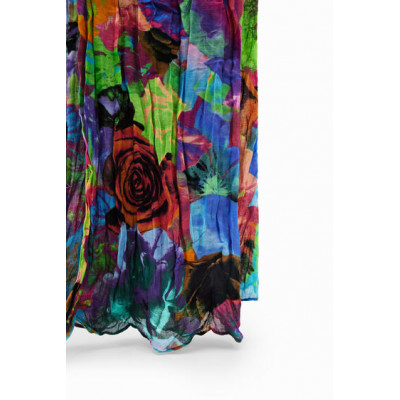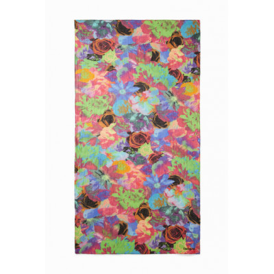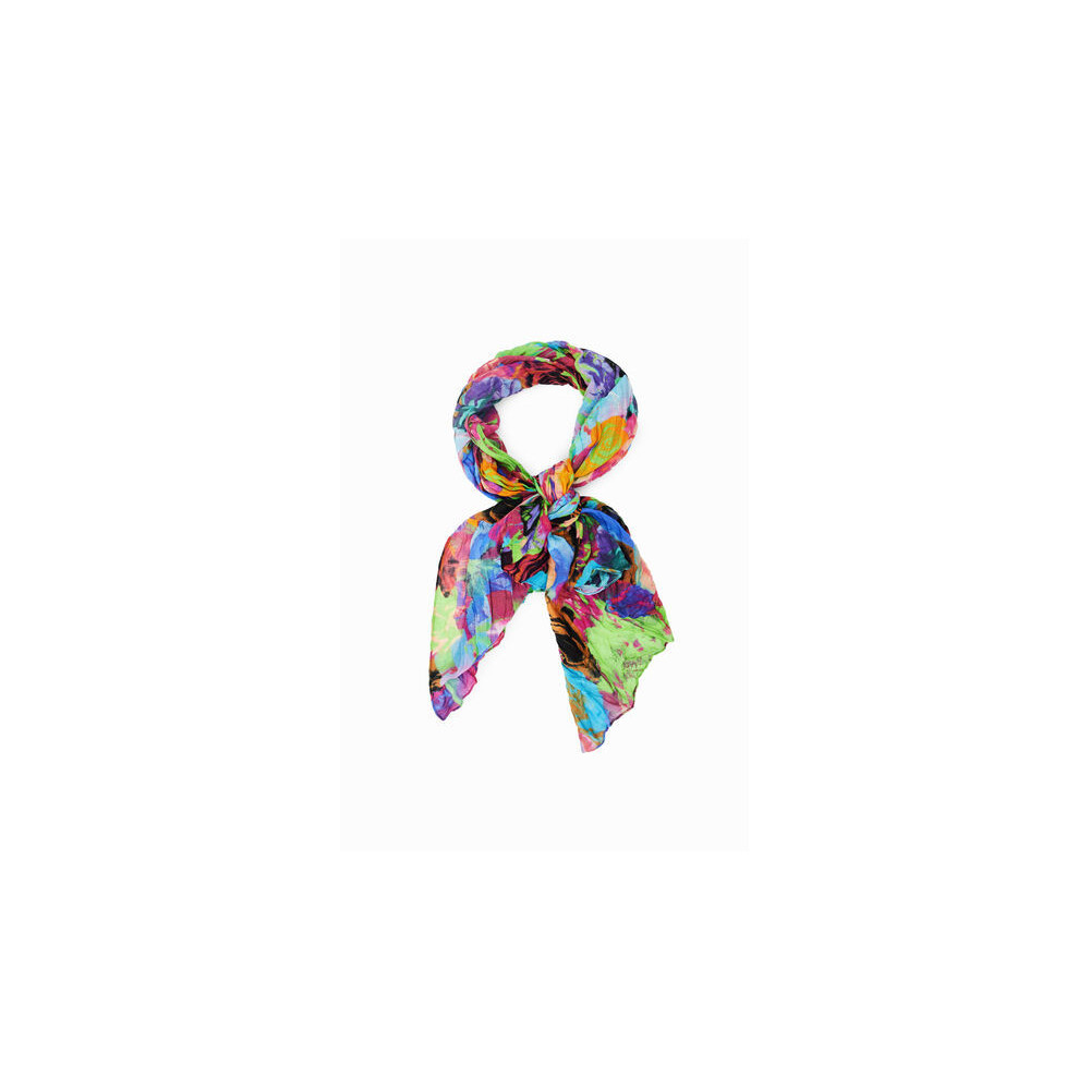 Foulard rectangulaire à la texture froissée, agrémenté d'un imprimé floral.
