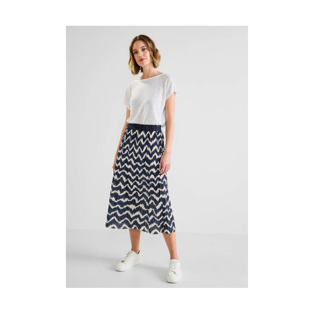C'est le printemps ! Jupe plissée douce et fluide de Street One à la coupe féminine. De longueur midi, elle dessine la silhouette et elle possède une taille élastique confortable. Avec son motif zigzag tendance elle est vraiment à la pointe de la mode.