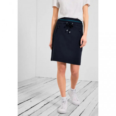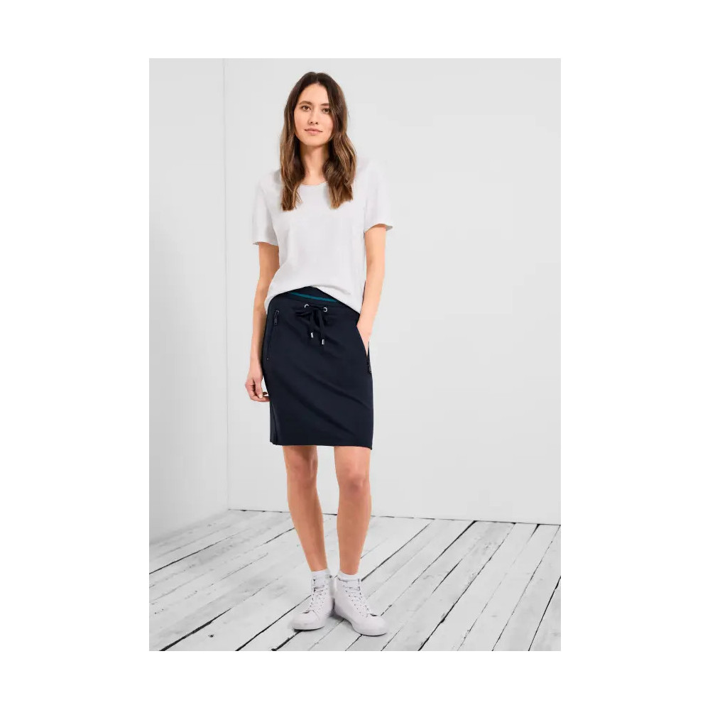 Confortable et sportive ! Jupe longueur de genou de CECIL, qui se présente dans un style jogging sportif. La taille élastique promet un confort agréable et attire les regards avec le cordon coulissant et des rayures universitaires. Des poches zippées pratiques sur les côtés complètent son look.