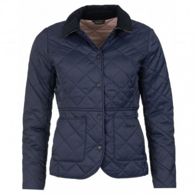 La veste Barbour Deveron est matelassée avec un col en velours côtelé et une doublure contrastée féminine. Il dispose de deux poches plaquées pratiques sur le devant et de la marque Barbour brodée pour une touche authentique.