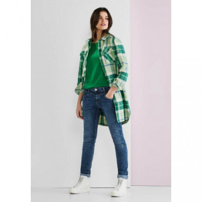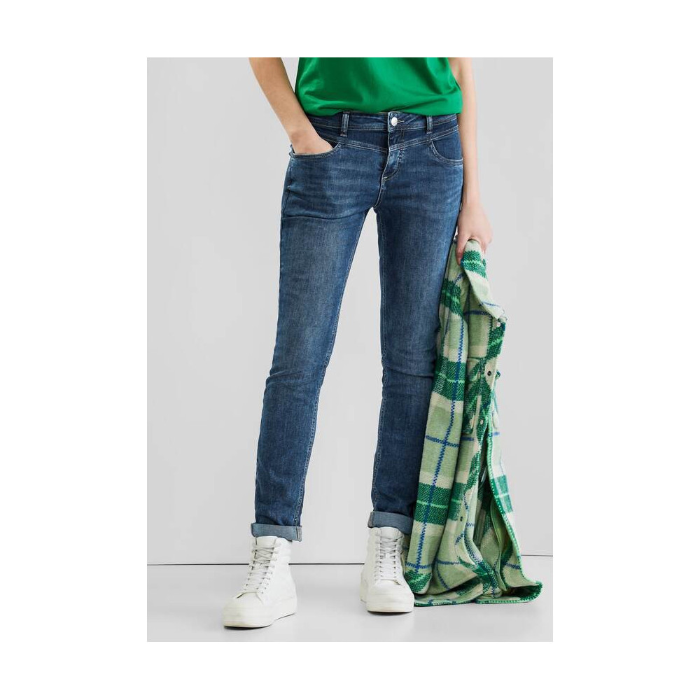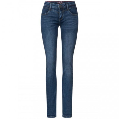 Ravissant jean ! Ce jean femmes coupe classique dans le style Jane de Street One flatte vraiment la silhouette. Avec son mélange de coton extensible et une taille mi-haute, il promet un confort agréable qui accompagne tous les mouvements. Son délavage bleu épuré se prête à de multiples combinaisons. Ce jean 4 poches bleu à jambes étroites est complété par une fermeture éclair avec bouton.