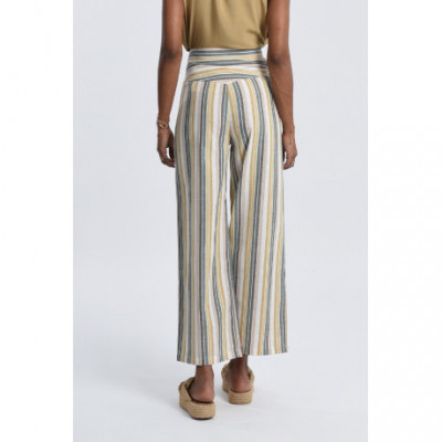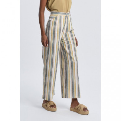 Pantalon à rayures, jambes larges, poche latérales, et empiècement en pointe dans le dos. Longueur : 103cm Taille S