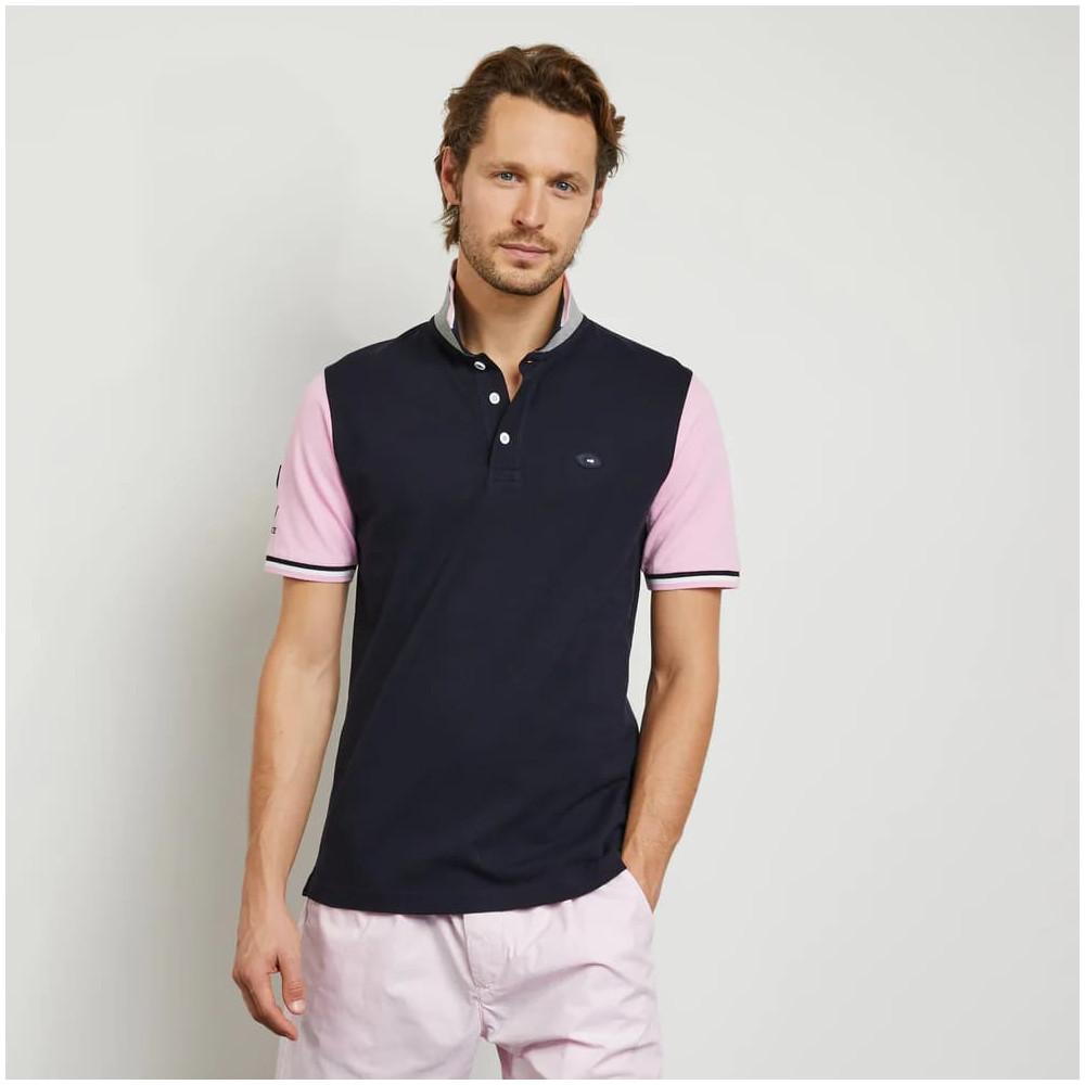 Ce polo color-block à manches courtes est rehaussé de finitions bord-côtes tricolores contrastées au niveau du col et des manches. Il est confectionné en piqué de coton et affiche un badge ovale brodé Eden Park à la poitrine et une broderie XV de France sur la manche droite