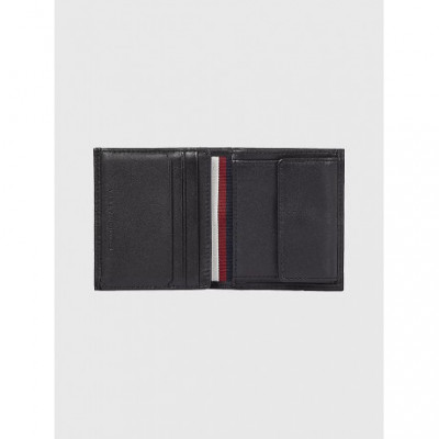 Rangez vos cartes et espèces en toute sécurité dans ce portefeuille à trois volets en cuir haut de gamme. Il présente une finition texturée luxueuse et une bande emblématique.