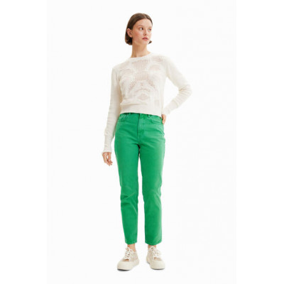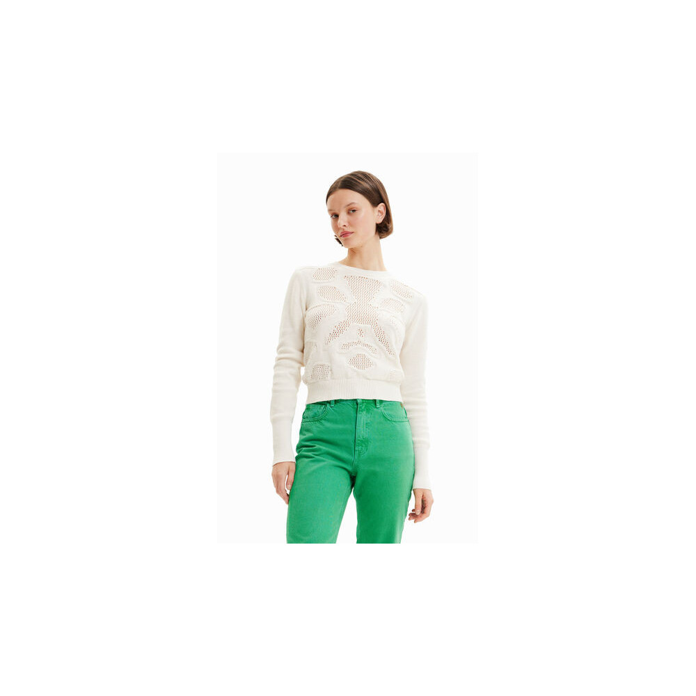 Pull à manches longues en maille fine, agrémenté de motifs ajourés effet fleur dessinée.