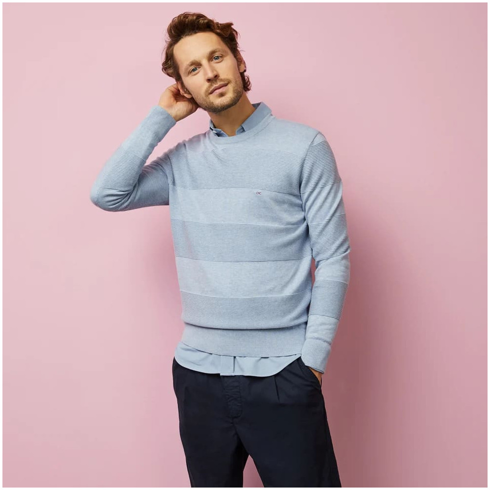Ce pull à col rond affiche un joli jeu de maille en jersey et en point mousse. Il est doté d'un logo noeud papillon brodé sur la poitrine et de finitions bord-côtes