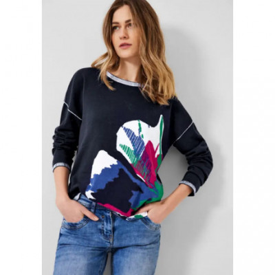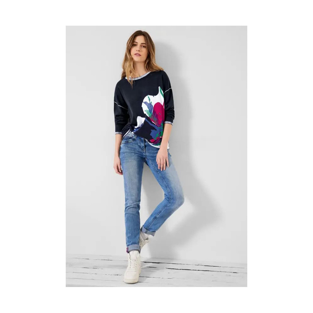 Des fleurs pour tous ! Beau pull-over femmes de CECIL qui attire le regard. Cela s'explique surtout par son imprimé partiel fleurs aux couleurs vives sur le devant, particulièrement bien mis en valeur sur la couleur unie classique. Une encolure bateau et des manches longues complètent habilement ce look.