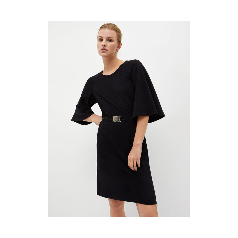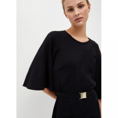 « Less impact, same style » (moins d'impact, même style). Aujourd'hui plus que jamais l'amour et le respect de l'environnement s'expriment à travers la féminité et l'esprit glamour des modèles Liu Jo. Insérée dans la proposition de collection « Liu Jo Better », cette robe casual pour femme est réalisée avec au moins 70 % de fibres naturelles issues de l'agriculture biologique oê l'utilisation de produits chimiques est réduite, et les critères environnementaux et sociétaux sont respectés à toutes les étapes de la chaîne de production. Be Better, do better.