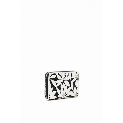 Petit portefeuille en tissu effet cuir agrémenté de fleurs estampées, doté de plusieurs compartiments.