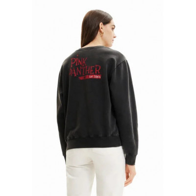 Sweat-shirt à manches longues effet délavé, agrémenté d'un dessin de Pink Panther usé à la texture caoutchoutée.
