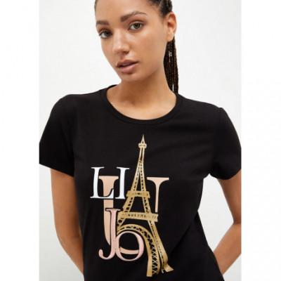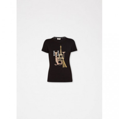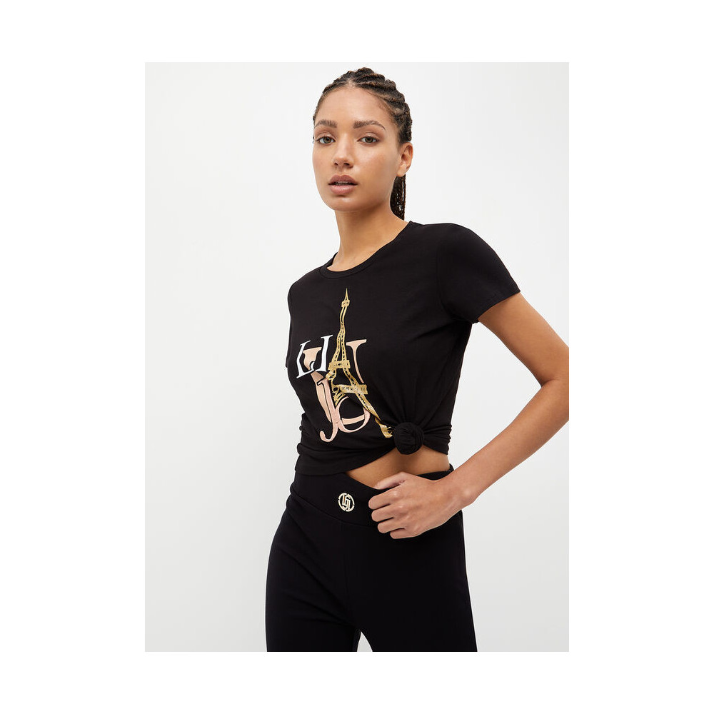 « Less impact, same style » (moins d'impact, même style). Aujourd'hui plus que jamais l'amour et le respect de l'environnement s'expriment à travers la féminité et l'esprit glamour des modèles Liu Jo. Inséré dans la proposition de collection « Liu Jo Better », ce t-shirt est réalisé avec au moins 70 % de fibres naturelles issues de l'agriculture biologique oê l'utilisation de produits chimiques est réduite, et les critères environnementaux et sociaux sont respectés à toutes les étapes de la chaîne de production. Be Better, do better.