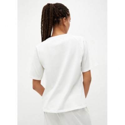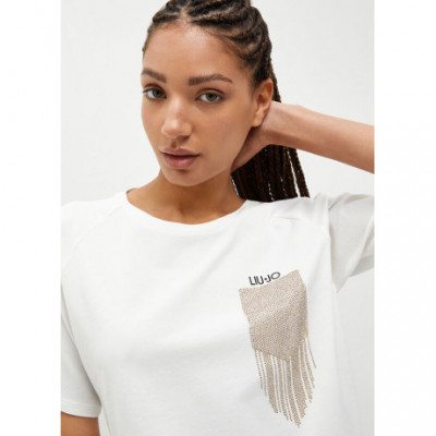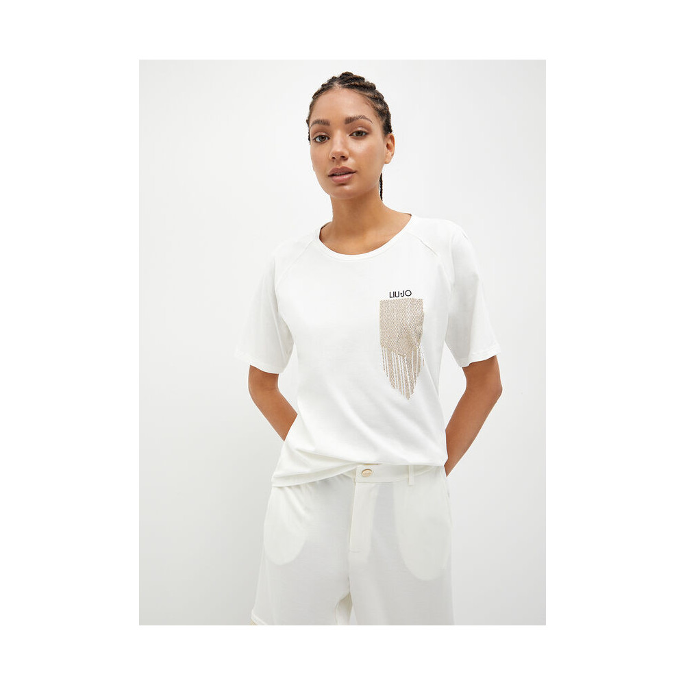 « Less impact, same style » (moins d'impact, même style). Aujourd'hui plus que jamais l'amour et le respect de l'environnement s'expriment à travers la féminité et l'esprit glamour des modèles Liu Jo. Inséré dans la proposition de collection « Liu Jo Better », ce t-shirt blanc pour femme est réalisé avec au moins 70 % de fibres naturelles issues de l'agriculture biologique oê l'utilisation de produits chimiques est réduite, et les critères environnementaux et sociétaux sont respectés à toutes les étapes de la chaîne de production. Be Better, do better.
