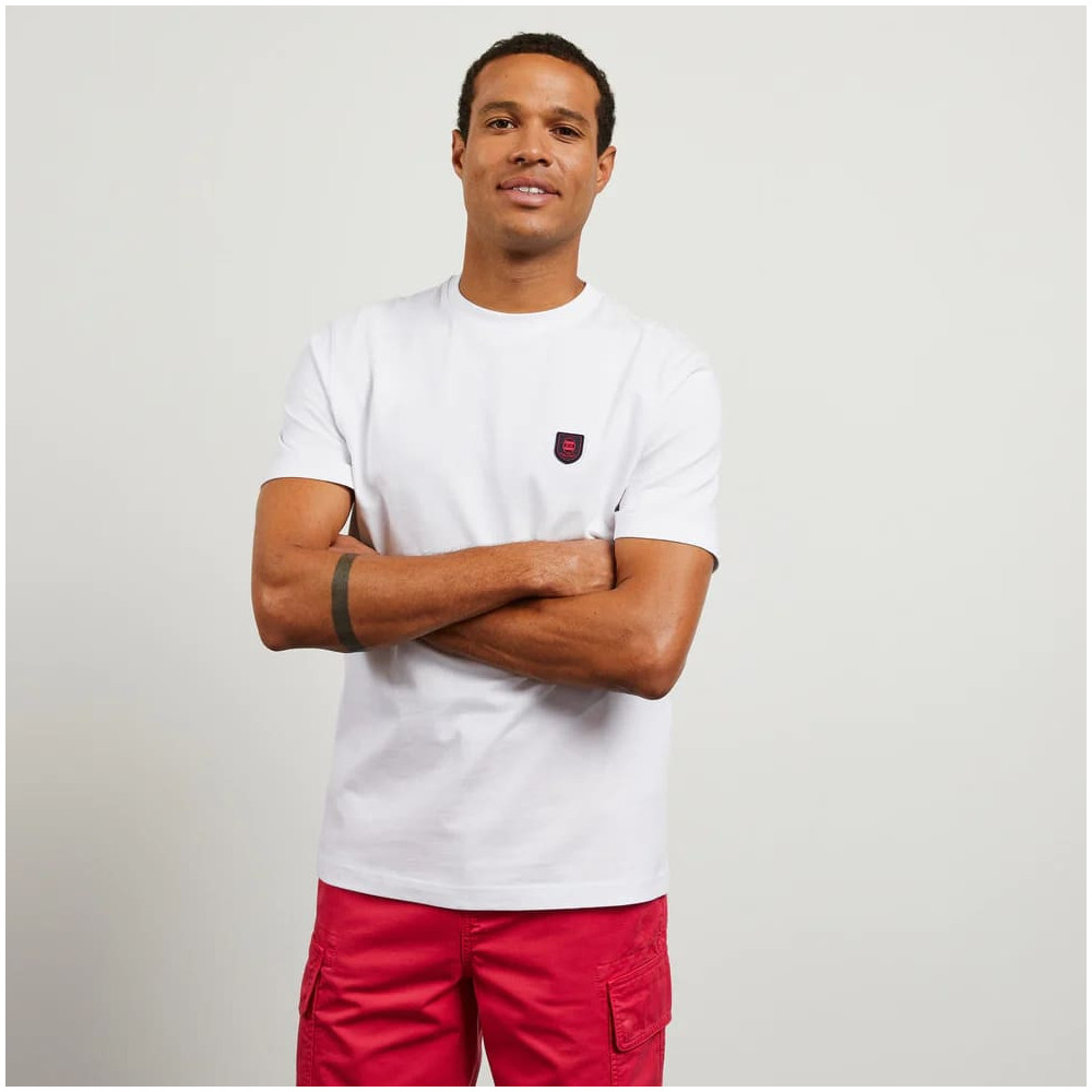 Conçu en jersey de coton, ce t-shirt à manches courtes présente une belle broderie n°10 Eden Park au dos avec des parties en tissu cravate. Il affiche notamment un badge logo en forme d'écusson placé à la poitrine