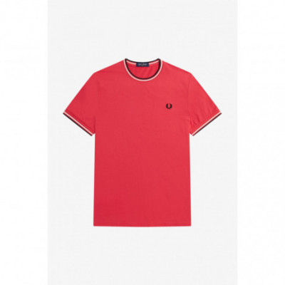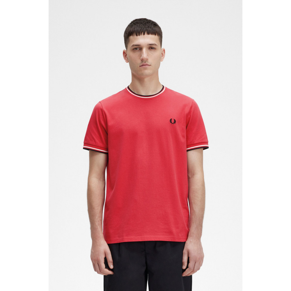 D'après la légende, notre double liseré doit son existence à un acheteur de chez Lillywhites, qui demanda à ce que les couleurs des équipes de football soient ajoutées au polo uni de Fred. Nous sommes les seuls à utiliser un liseré en proportion 5-4-4, et il est ancré dans notre ADN. Notre t-shirt à col ras du cou arbore notre double liseré et notre couronne de laurier brodée assortie emblématiques. Fred Perry dans les moindres détails.