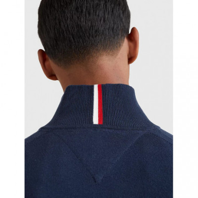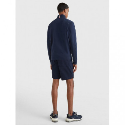 Ce pull à fermeture Éclair orné d'une bande emblématique à l'arrière du col et d'un drapeau brodé classique est caractérisé par un branding minimaliste.