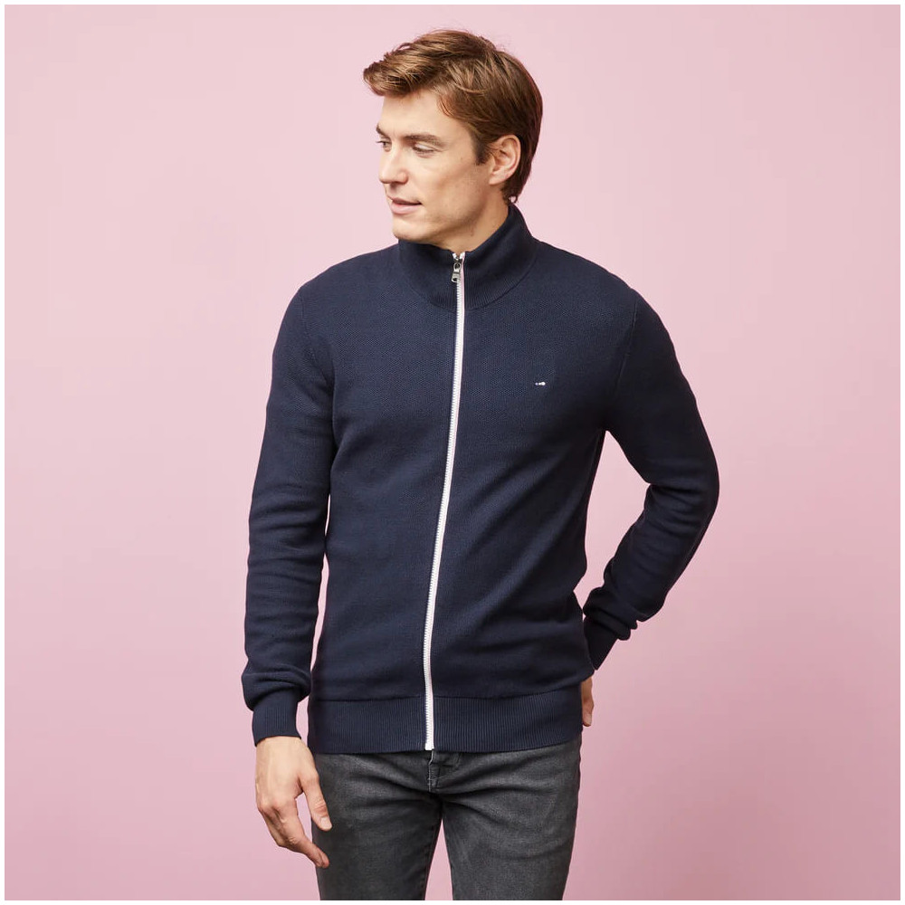 Ce cardigan saura réchauffer vos tenues et vous offre un confort optimal grâce à sa conception en pur coton. On remarque les détails tricolores qui rehaussent parfaitement le coloris uni du cardigan
