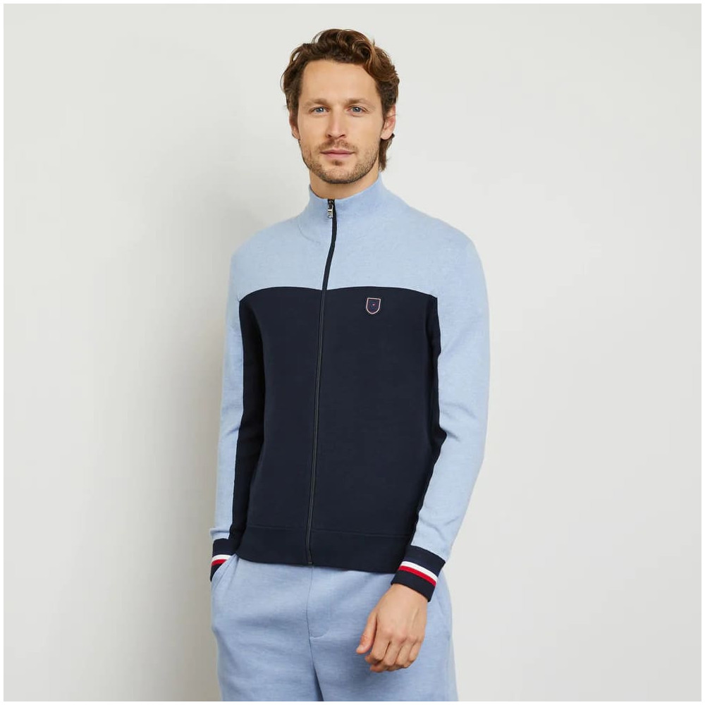 Affichant un look color-block, ce cardigan zippé possède un col montant à revers contrasté tricolore. Il est doté d'un badge logo Eden Park sur la poitrine et est rehaussé par des poignets à rayures tricolores